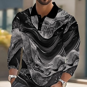 Herr Abstrakt Marmor Polo Långärmad Polotröjor Kavajslag Ledigt Gata Fritids- Dagliga kläder 3D-utskrift Knappar Vår Höst Vinter Blå Guld Grön