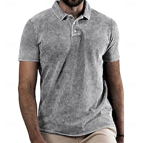 Herr Marmor Pikétröjor Kortärmad Polotröjor Skjortor med krage Ledigt Fritids- Knappar Sommar Vår Blå Grön Grå