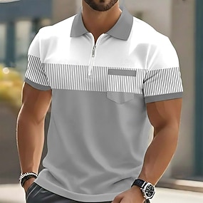 Herr Randig Pikétröjor med dragkedja Golftröja Kortärmad Polotröjor Skjortor med krage Business Casual Arbetskläder Högtidskläder Festivalkläder 3D-utskrift Quarter Zip Polo Brun Grön Grå