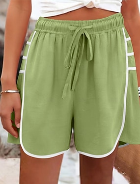Dam Shorts i bomullslinne Shorts Sommarshorts Beach Shorts Semester Mode Ledigt vardag Kort Hög midja Ensfärgat Slät Snörning Lappverk Elastiskt midjeband Komfort Mjuk Andningsfunktion Microelastisk