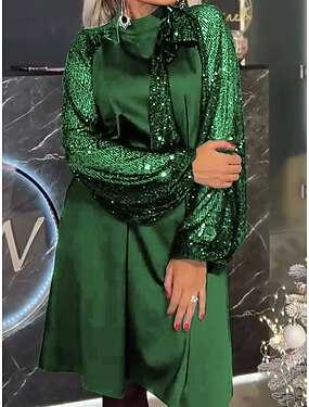 Jul Dam Knälång klänning A linjeklänning Elegant Stylish Ledigt Fest Normal Ensfärgat Långärmad Hög hals Blå Svart Rubinrött Purpur Vår Höst Vinter