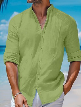 herrskjorta linneskjorta st. patrick day sommarskjorta strandkläder knäppt skjorta enfärgad avslappnad strand kortärmad krage sommar vår &sommarkläder kläder färgblock