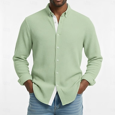 Herr Skjorta Våffelskjorta Casual skjorta Bandkrageskjorta Knapp upp skjorta Blå Rodnande Rosa Grön Grå Långärmad Slät Kraghalsband Ledigt Dagligen Lappverk Kläder Mode Modern Ledigt Bekväm