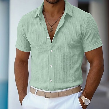 Herr Skjorta Sommarskjorta Casual skjorta Strandskjorta Knapp upp skjorta Jacquardskjorta Blå Svart Vit Rodnande Rosa Marinblå Kortärmad Slät Kavajslag Ledigt Streetwear Kläder Polyester Mode Ledigt