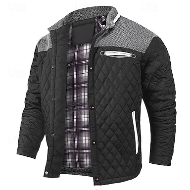 Herr Quiltad jacka Vardaglig jacka Semester Dagligen Håller värmen Lappverk Ficka Höst Vinter Färgblock Mode Klassisk Hög krage Normal Svart Blå Kaki Armégrön Jacka