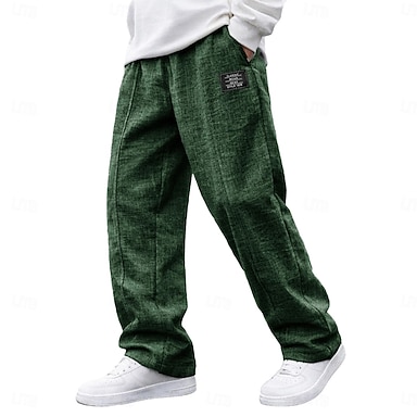 Herr Linne Byxor Långbyxor Sommarbyxor Casual byxor Snörning Elastisk midja Rakt ben Slät Komfort Andningsfunktion Fullängd Ledigt Dagligen Utomhus Mode Klassisk Stil Svart Vit Oelastisk