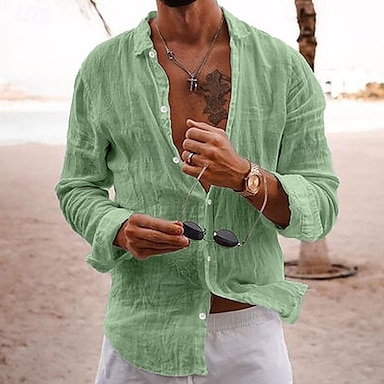 Herr Skjorta Linneskjorta Sommarskjorta Standkläder Slät Semester Ledigt Svart Vit Grön Grå Långärmad Kavajslag Sommar Vår Kläder