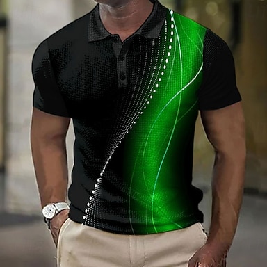 Herr Polo Ledigt Nedvikt Kortärmad Geometrisk Abstrakt Knappar Sommar Normal Svart Multifärgad Orange Grön Polo