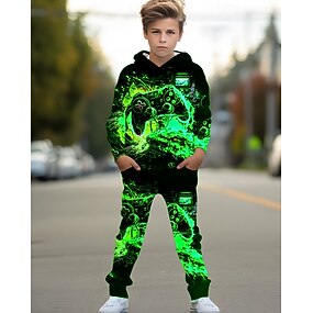 Pojkar 3D Grafisk Spel Huvtröja & träningsbyxor Set Sportdräkt Träningsoveraller Långärmad Vår Höst Dagligen Grundläggande Ledigt Barn 4-12 år Huva Utomhus Semester Sport Skräddarsydd passform