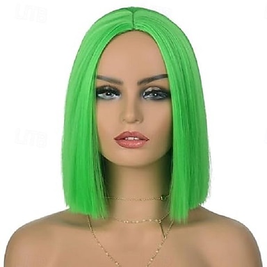 Gröna peruker syntetisk peruk rak bob med mittdel kort grön syntetiskt hår kvinnor mjuk mode