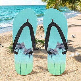 unisex tropiska solnedgångsflip flops – livfulla strandsandaler med palmtryck för sommar-, pool- och semesterkläder