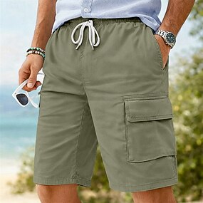 Herr Cargo-shorts Shorts Linne Shorts Sommarshorts Beach Shorts Snörning Elastisk midja Flera fickor Slät Komfort Andningsfunktion Knelängd Utomhus Dagligen Helgdag Mode Retro / vintage Svart Vit