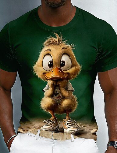Herr söt 3D-animerad ankunge i sneakers grafisk t-shirt rolig karaktär kortärmad rund hals krämfärgad beige casual streetwear-t-shirt designerkläder s m l xl xxl xxxl