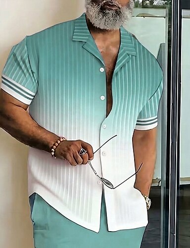 Herr Geometrisk Randig Gradientfärg Skjorta Knapp upp skjorta Lägerskjorta Kortärmad Business Casual Streetwear Semester Sommar Vår Kubansk krage 3D-utskrift Blå Purpur Grön Kaki