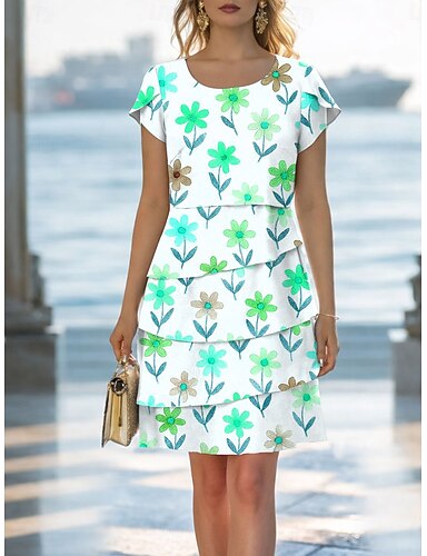 Dam Mini klänning Skiftklänning Sommarklänning Semester Boho Dagligen Datum Utekväll Normal Blommig Grafisk Kortärmad Rund hals Purpur Orange Grön Sommar Vår