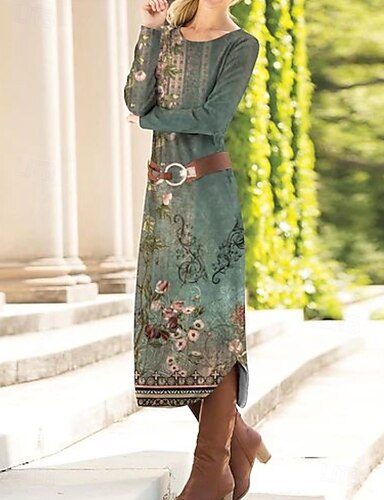 Dam Maxiklänning Skiftklänning Sheath Dress party Ledigt Boho Dagligen Fest Bröllopsgäst Normal Blommig Grafisk Paisley Långärmad Rund hals Svart Brun Grön Vår Höst Vinter