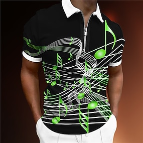 musikfestival Herr Musik Pikétröjor med dragkedja Golftröja Kortärmad Polotröjor Skjortor med krage Ledigt Semesterkläder Festivalkläder Festkläder 3D-utskrift Quarter Zip Polo Marinblå Grön