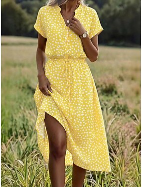 Dam Midiklänning Vardagsklänning Blommig klänning Prickig klänning Elegant Mode Modern Utomhus Semester Utekväll Normal Prickig Kortärmad V-hals Blå Svart Vit Gul Sommar Vår