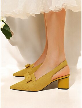 slingback klackar med rosettdetalj, överdel i flystickat mesh och blockklackar för eleganta kontorskläder och kvällsevenemang