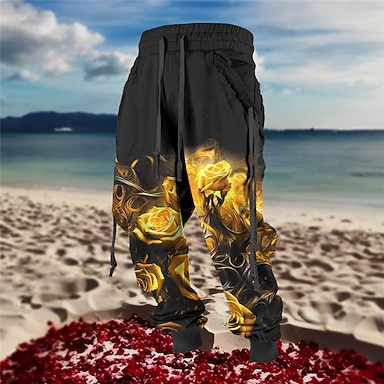 alla hjärtans dag ros herr romantiska 3d-tryckta träningsbyxor joggingbyxor byxor elastisk midja dragsko komfort utomhus dagligt slitage s till 3xl