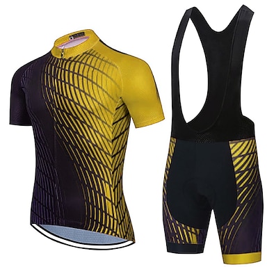 Herr Cykeltröja med shorts Kortärmad Bergscykling Vägcykling Sommar Vår Höst Svart Gul Geometrisk Rand Bokstav & Nummer Cykel Dragkedja fram Svettavvisande Bekväm Andningsfunktion Elastan sporter