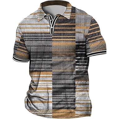 Herr Våffelpikétröjor Strukturerad Ledigt Semester Kavajslag Kort ärm Mode Pläd / Randig / Chevron Mönster Sommar Torr passform Blå Gul Rodnande Rosa Rubinrött Ljuslila Orange Våffelpikétröjor