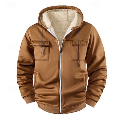 Herr Huvtröja Huvtröja med dragkedja Huvtröja i fleece Blå Svart Brun Huva Slät Dragkedja Ficka Sport & Utomhus Ledigt Dagligen Streetwear Designer Grundläggande Höst Vinter Kläder Pull Tröjor