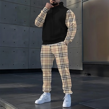 Herr Geometrisk Färgblock 2st 3D-tröja set Träningsoverall Hoodie-tröja Långärmad Långa byxor Huva Sportig Ledigt vardag Fritids- 3D-utskrift Färgblock Vår Höst Vinter Grå
