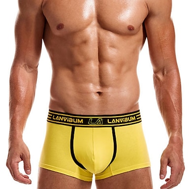 Herr 1 st Boxershorts Elastisk midja 100 % bomull Andningsfunktion Mjuk Bekväm Rand Mellanhög midja Vit Gul