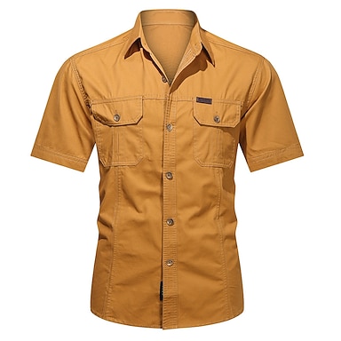 Herr Skjorta Knapp upp skjorta Casual skjorta Arbetsskjortor Cargo skjorta Svart Gul Armégrön Marinblå Blå Kortärmad Slät Nedvikt Gata Ledigt Button-Down Kläder Bomull Mode Klassisk Bekväm