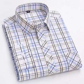 Herr Skjorta Button Down skjorta Icke-järnskjorta Oxford skjorta Ränder och pläd Bröllop Semester Ljusgul Denim blå Vit Gul Långärmad Nedvikt Alla årstider Kläder Button-Down