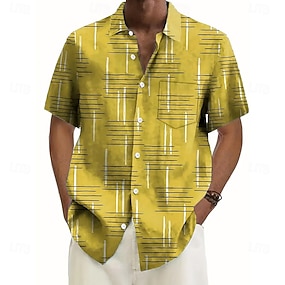 Herr Geometrisk Linje Skjorta Casual skjorta Knapp upp skjorta Kortärmad Mode Casual Semester Helgdag Streetwear Sommar Nedvikt 3D-utskrift krage skjortor Främre en ficka Blå Gul