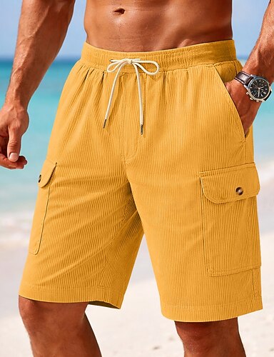 Herr Cargo-shorts Shorts Casual shorts Manchester Shorts Ficka Elastisk midja Slät Komfort Andningsfunktion Knelängd Ledigt Utomhus Strand Semester Mode Svart Vit Oelastisk