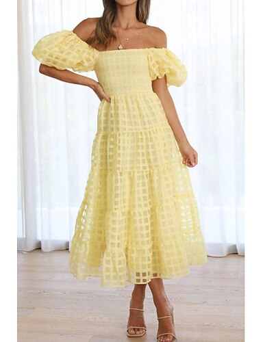 Dam Midiklänning Examensklänning Mode Modern Puffärmad Semester Gradering Helgen Normal Slät Kortärmad Över axeln Blå Svart Vit Gul Sommar