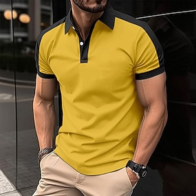 Herr Golftröja Golf pikétröjor Arbete Ledigt Kavajslag Kortärmad Grundläggande Modern Färgblock Lappverk Knappar Sommar Normal Gul Rubinrött Marinblå Grön Ljusblå Grå Golftröja