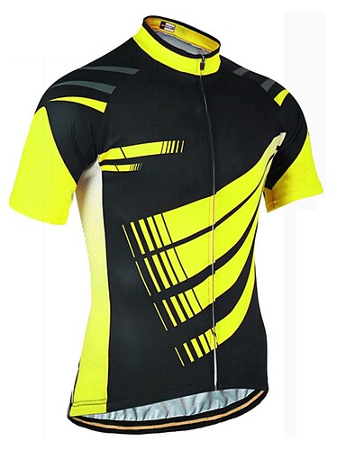 Herr Cykeltröja Grafisk Geometrisk Bokstav & Nummer Kortärmad Cykel Tröja Överdelar med 3 bakfickor UV-resistent Snabb tork Dragkedja fram Reflexremsa sporter Gul Kläder