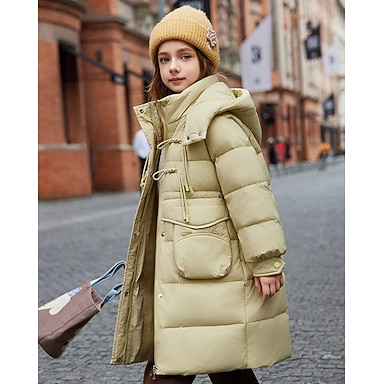 Barn Flickor Dunjacka Pufferjacka Bokstav Sport Ficka Håller värmen Vindtät Utomhus Täcka Ytterkläder 4 år + Vinter Svart Gul Rodnande Rosa