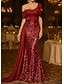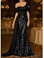 Sjöjungfru / trumpet Golvlång Kvälls klänningar Balklänning Elegant glittrande Silkig Ärmlös Enaxlad Formell Bröllop Avtagbar Satäng Paljetter med Glitter Broderad 2025