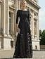Sjöjungfru / trumpet Golvlång Formell klädsel Aftonklänning 3/4 ärm Halvlång ärm Illusionshalsband Prydd med juveler Elegant Vintage party Spets Stretchtyg Klänning till brudens mor med Bälte / band