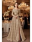 A-linje Golvlång Kvälls klänningar Balklänning Formell klädsel Elegant Silkig 3/4 ärm Rund hals Formell Bröllop Ficka Satäng Stretchig satäng med Glitter Rosett(er) Ficka 2025