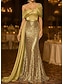 Åtsmitande Golvlång Kvälls klänningar Balklänning med överkjol Formell klädsel Elegant glittrande Glittriga Långärmad Enaxlad Formell Bröllop Paljetter med Glitter 2025