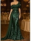 Sjöjungfru / trumpet Golvlång Balklänningar Kvälls klänningar Balklänning Formell klädsel Elegant Glittriga Kortärmad Enaxlad Formell Bröllop Ficka Paljetter med Glitter Paljett 2025
