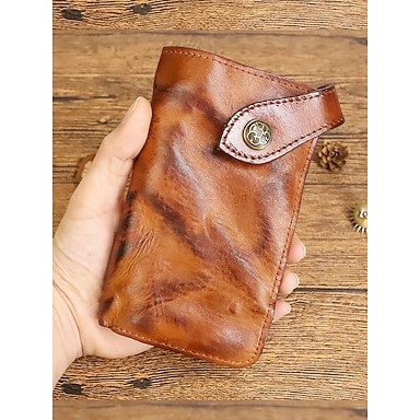 vintage brun läderplånbok för män med blixtlåsficka och snäppstängning – snygg dubbelsidig plånbok för dagligt bruk