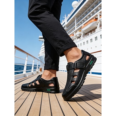 Herrsandaler i konstläder med island och cruise-sandaler, justerbara remmar, andningsbar design för bekväm semesteranvändning