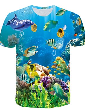 Barnens Dag Pojkar 3D Haj 3D-utskrift Fisk T-shirt Kortärmad Sommar Aktiv söt stil Streetwear Barn Småbarn 2-12 år
