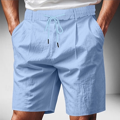 Herr Våffelshorts Sommarshorts Beach Shorts Casual shorts Snörning Elastisk midja Ensfärgat Komfort Knelängd Dagligen Utomhus Streetwear Semester Mode Vit Marinblå Microelastisk