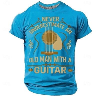 Herr T-shirt med akustiska gitarrsträngar, G-klav, musiknoter, vintage retro, musikälskare, grafisk, normal passform, fars dag, födelsedagspresent, designerkläder