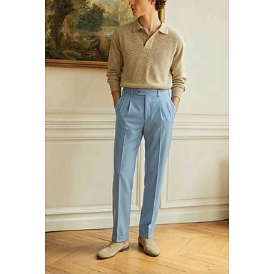 Herr Linne i bomull Kostymbyxor Formell Himmelsblå Beige Ensfärgat Standardpassform Lång Oelastisk