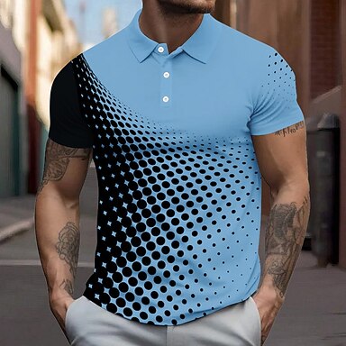 Herr Geometrisk Polo Kortärmad Polotröjor Skjortor med krage Business Casual Skola Utomhus Fritids- Dagliga kläder 3D-utskrift Sommar Vit Himmelsblå Mörkblå
