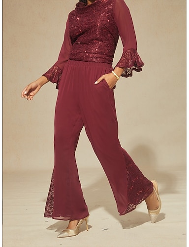 Dam Bell Botten Flared byxor Elegant Fullängd Medium Midja Spets Ficka Elastiskt midjeband Microelastisk Dagligen Bröllop Cocktailfest Vin Sommar Vår Höst Normal